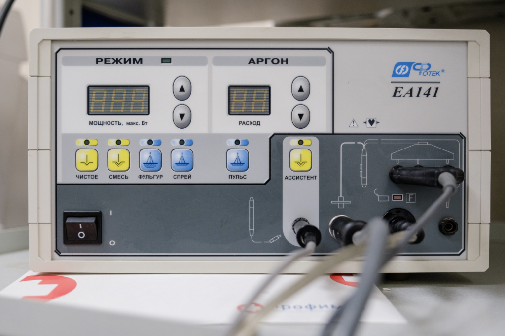 - В нашем центре диагностика и лечение заболеваний шейки матки происходит с применением аппарата радиоволновой хирургии «Фотек- Е80М».